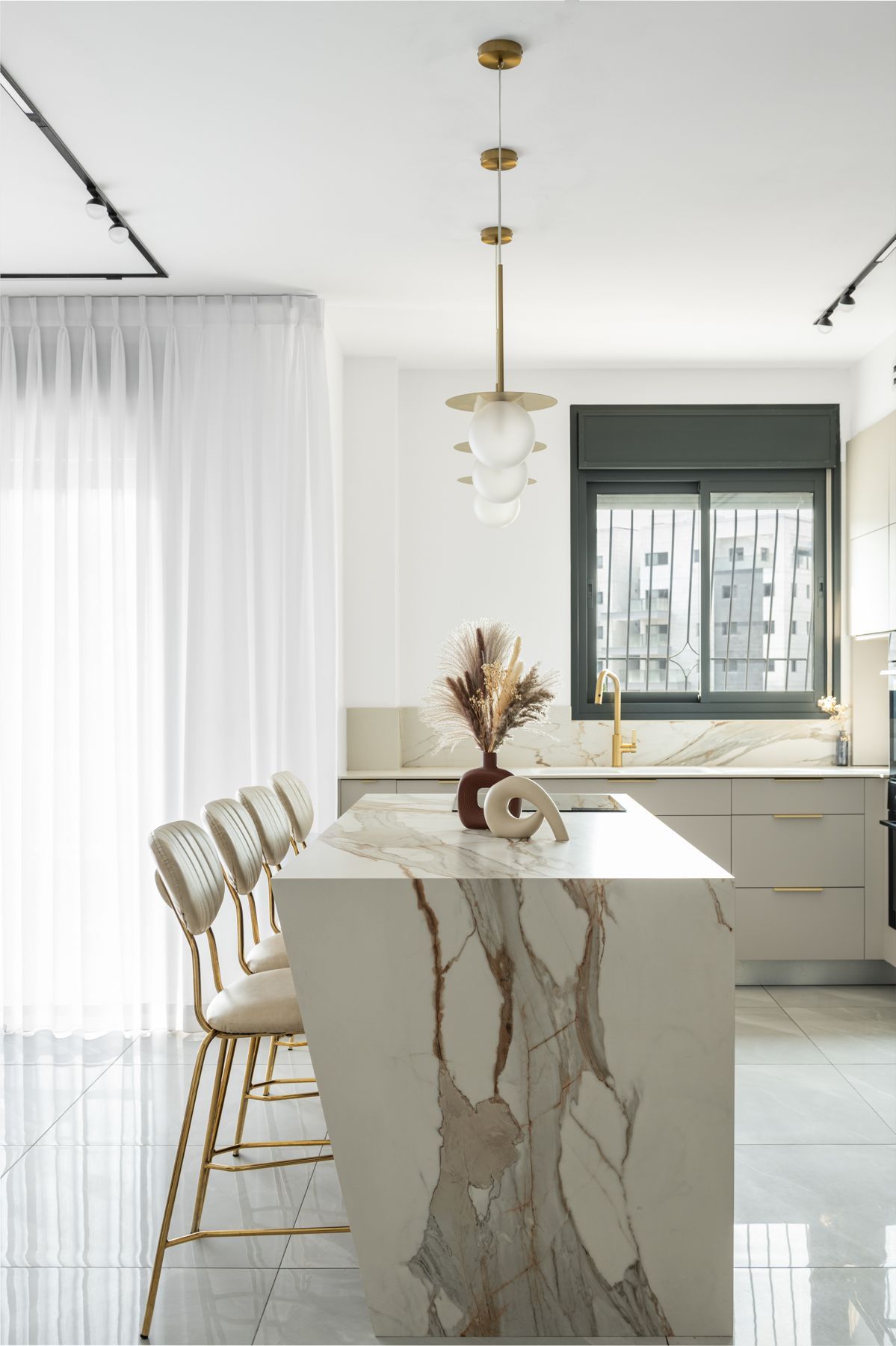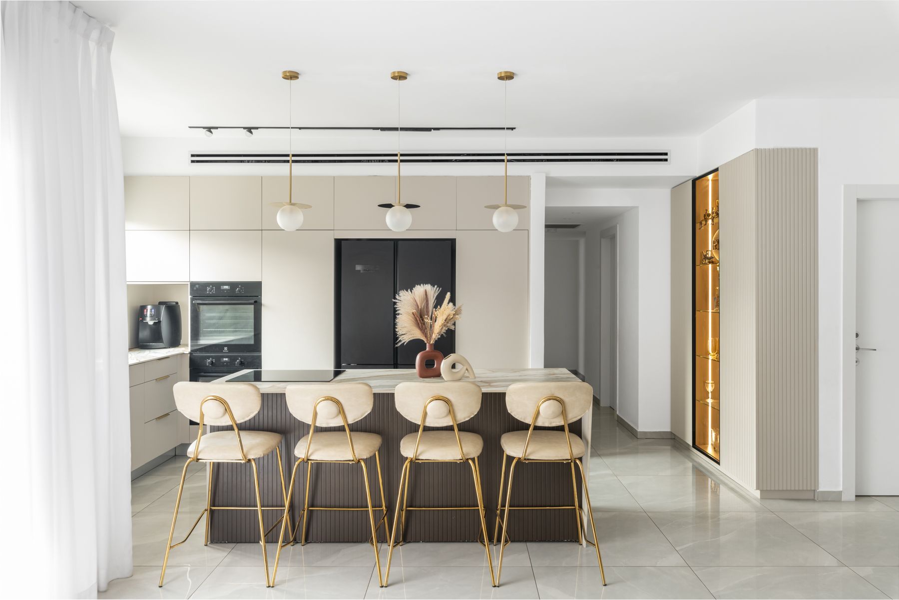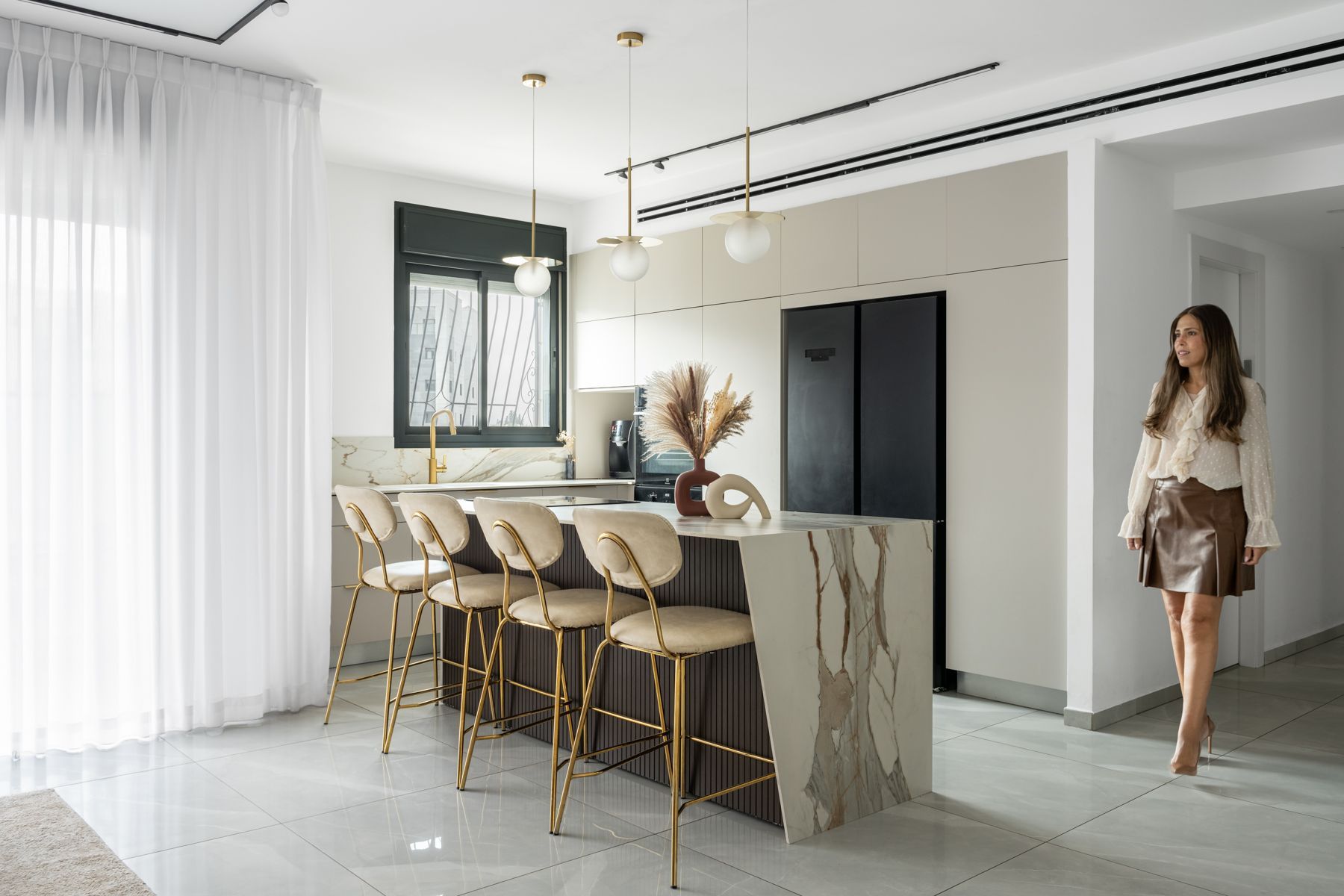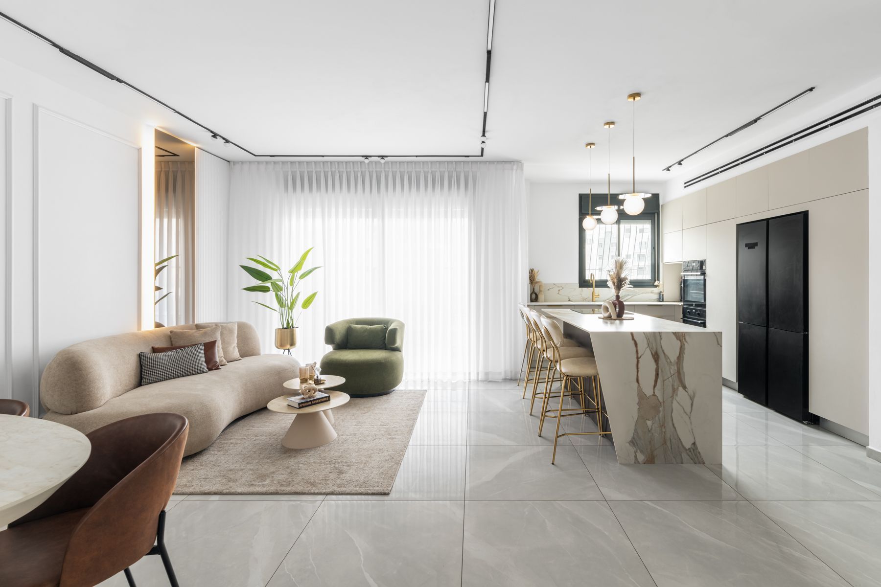 המטבח עוצב בקווים מודרניים עם דגש על פונקציונליות ונוחות, תוך שימוש בחומרים איכותיים. חללי המגורים שודרגו עם גופי תאורה מוקפדים, צבעים רכים וחומרים חמים, ליצירת מראה מעודכן ויוקרתי.